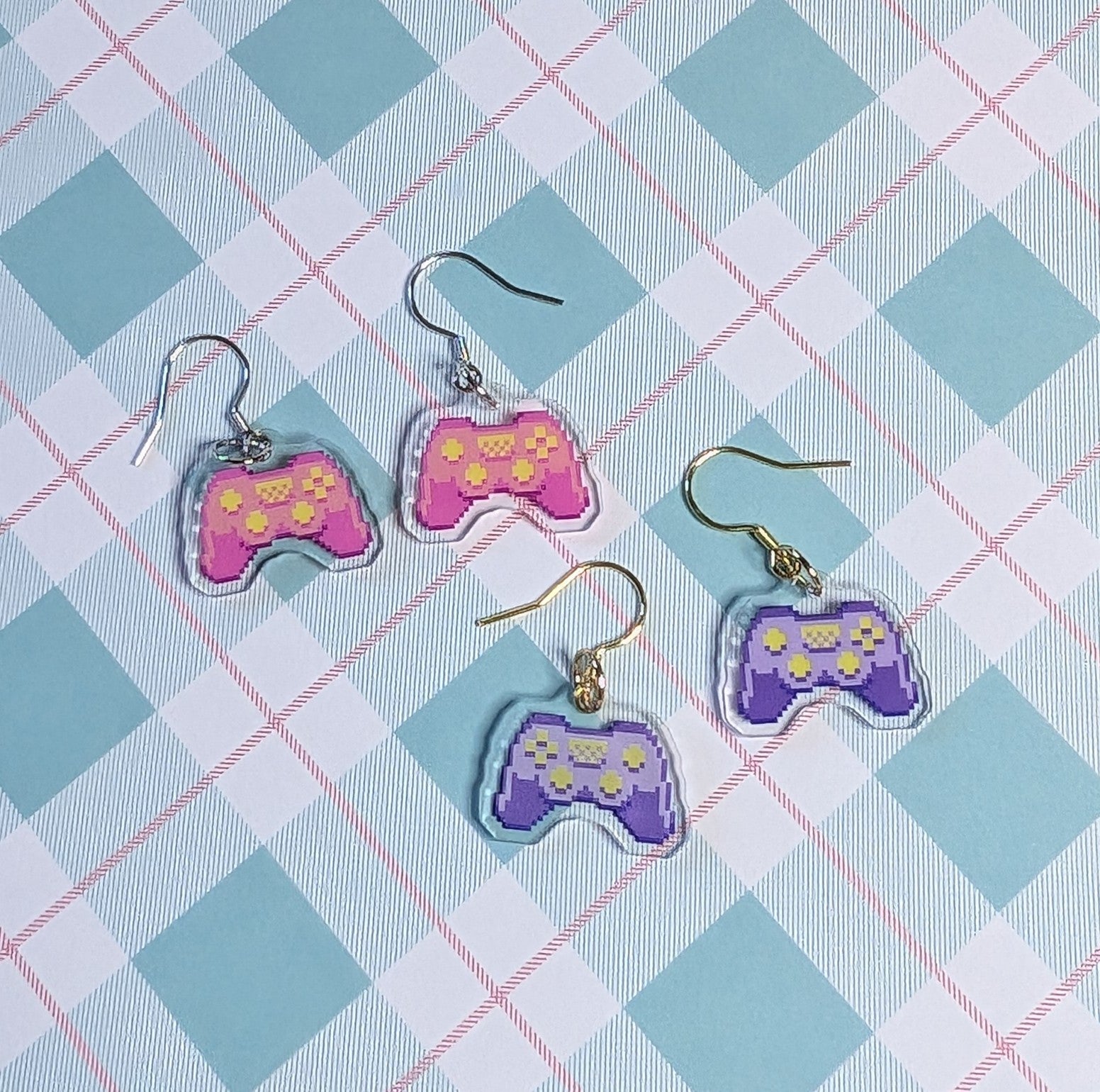 Get your game on with these game controller acrylic earrings! Available in 2 colours and both gold and silver.