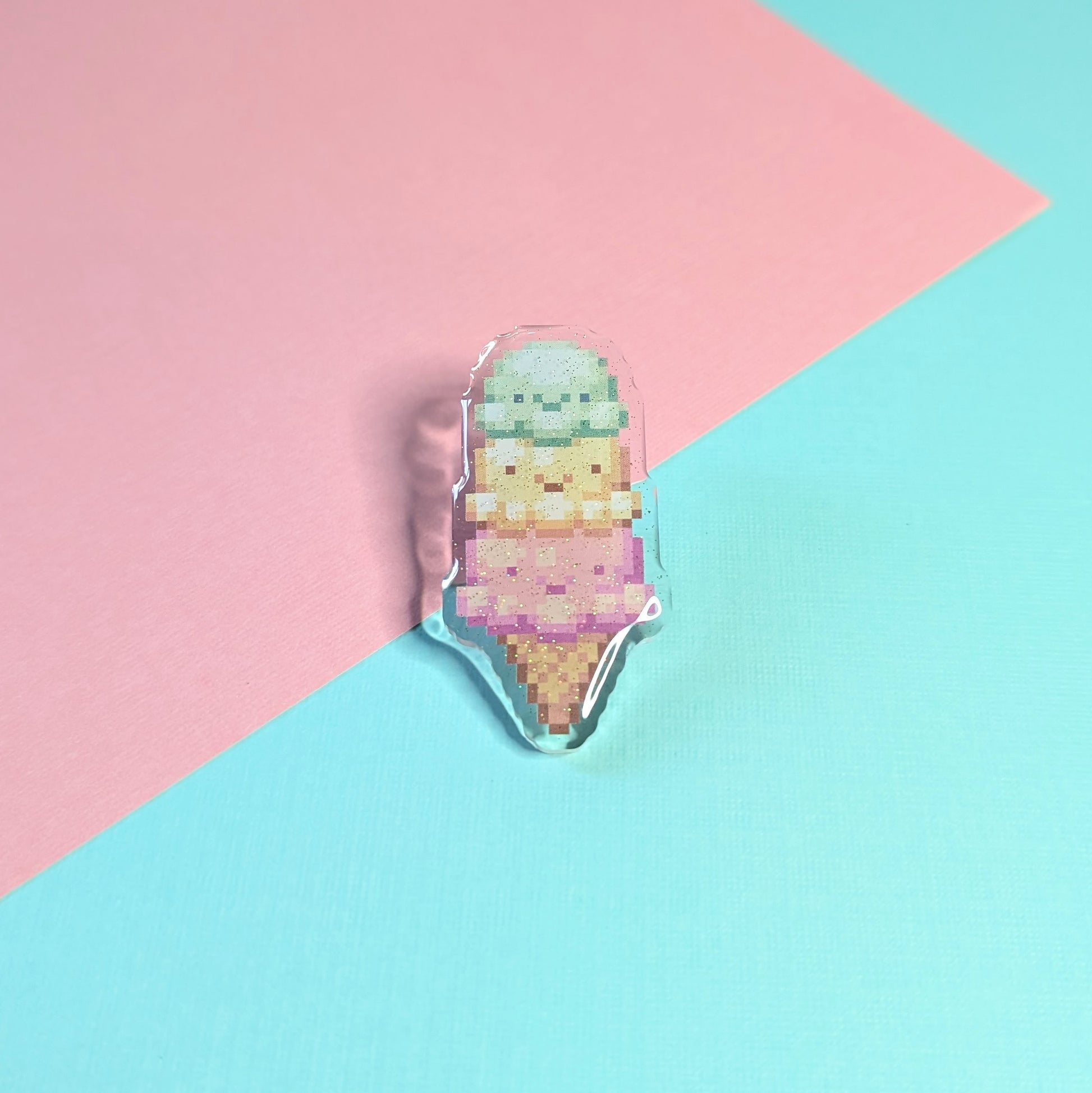 A happy ice cream family of pistachio, vanilla, and strawberry!